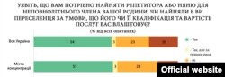 «Як українці ставляться до переселенців» – таке дослідження провело Управління верховного комісара ООН у справах біженців спільно з Київським міжнародним інститутом соціології. Це перше ґрунтовне дослідження в цій галузі. Результати соцопитування в Міністерстві з питань тимчасово окупованих територій і внутрішньо переміщених осіб узяли як основу для розробки програм і стратегій. Збір інформації проводився двома шляхами: дві тисячі респондентів зі всіх регіонів України були опитані особисто і стільки ж респондентів були опитані телефоном.