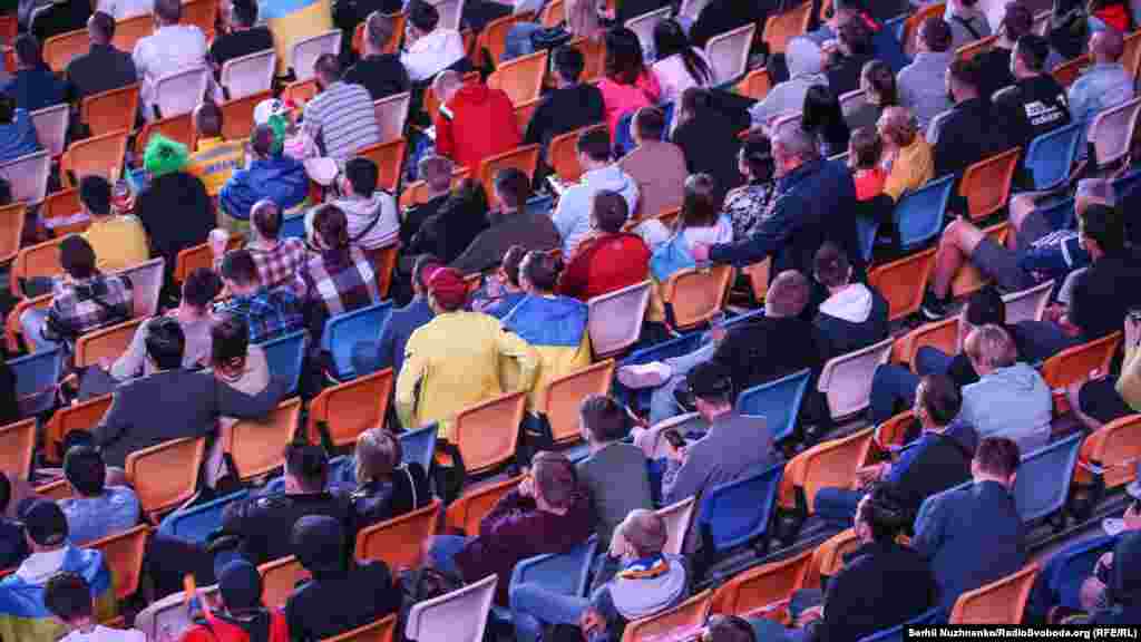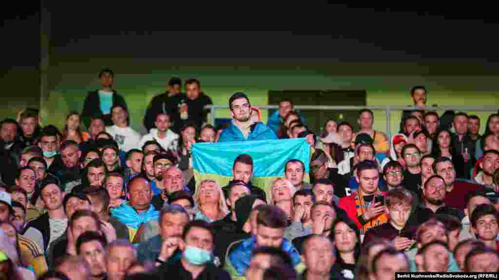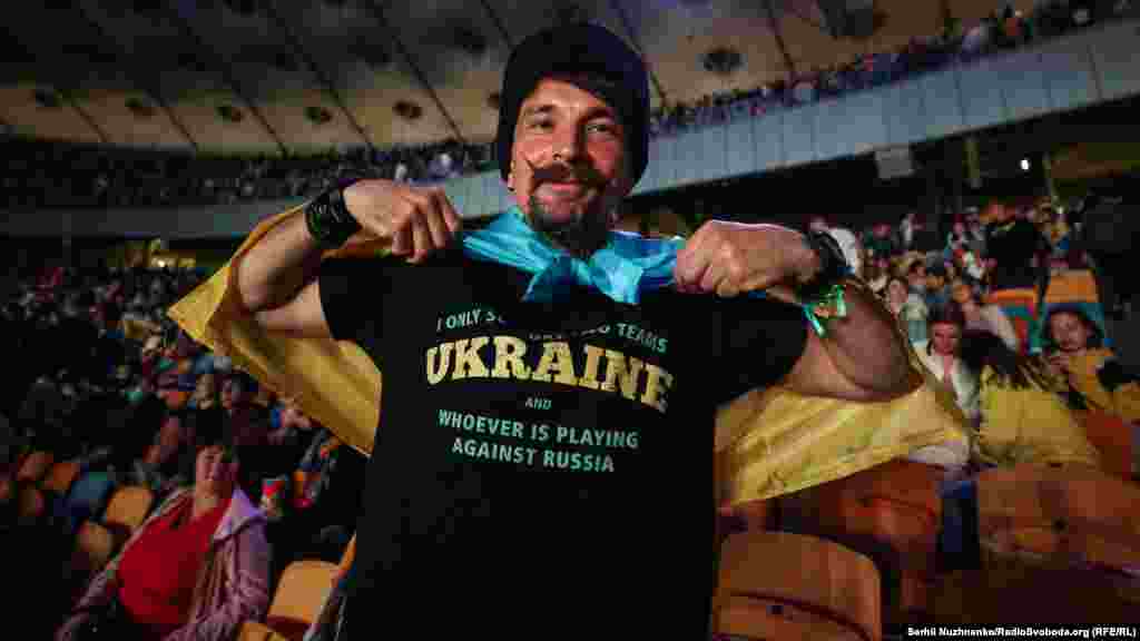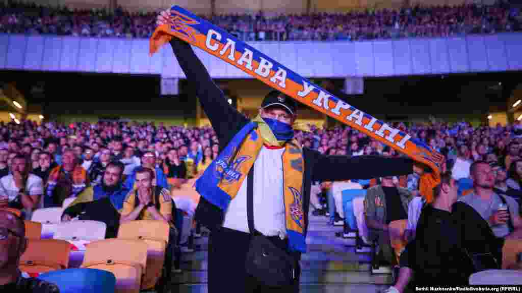 За сотні кілометрів від Амстердаму, де грали збірні, у Києві вболівальники підтримували національну збірну. Як це було – бачив фотокореспондент Радіо Свобода.