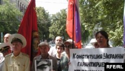 «Україно, геть із Криму!» – кілька десятків активістів Народного фронту «Севастополь – Крим – Росія» налаштовані рішуче. Вони прийшли на пікетування з портретами мера Москви Юрія Лужкова, оголошеного Києвом персоною «нон грата» на території України.