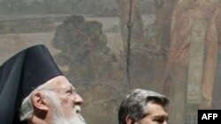 Віктор Ющенко у вітальному слові наголосив, що прибуття Вселенського патріарха до України є визнанням заслуг українських християн і християнської Церкви і «знаком Божого благословення для української землі і українського народу».