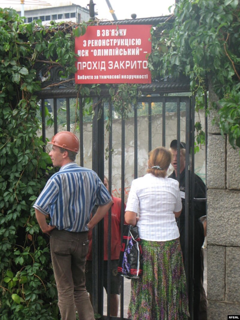 Прохід в спорткомплекс «Олімпійський» тимчасово перекритий через реконструкцію. Сходи до стадіону обставлені дерев’яними огорожами. Працюють крани, навколо стоять вантажівки та інша необхідна техніка. Працюють будівельники по 12 годин щодня. І будівельники переконують, що стадіон, де має відбутися фінальний матч першості Європи з футболу 2012-го року, буде реконструйований на найвищому рівні. Чи справдяться їхні обіцянки, покаже час.