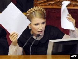 Прем'єр-міністр Юлiя Тимошенко закликала Верховну Раду проголосувати за президентський законопроект, спрямований на боротьбу з наслiдками свiтової кризи, погодившись зняти з розгляду урядовий проект.