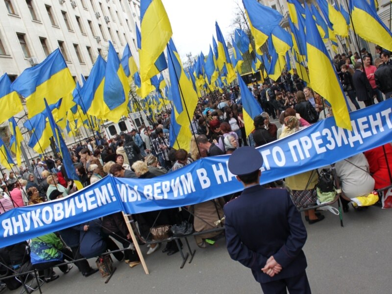 Від будівель Верховної Ради та Адміністрації Президента нашоукраїнців відділяли прихильники чинного глави держави, які прийшли підтримати Харківські угоди та свого Президента. Здебільшого, це була учнівська молодь та люди пенсійного віку. За словами депутата-нашоукраїнця Андрія Парубія, підтримати главу держави ці люди прийшли не безкоштовно, а за 80 гривень.