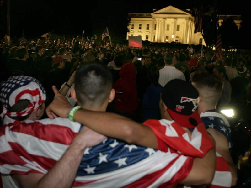 Іще під час його виступу, незважаючи на пізню годину, люди почали виходити на вулиці, святкуючи з приводу такого оголошення. Багато людей зібралося під Білим домом у Вашингтоні; тисячі вийшли в Нью-Йорку на місце знищеного 11 вересня 2001 року Світового торговельного центру, коли загинули близько 3 тисяч людей, і на центральну площу Таймз-сквер.