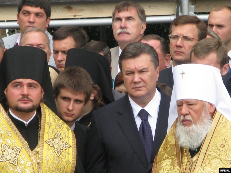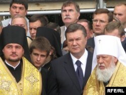 Народний депутат, лідер Партії регіонів Віктор Янукович на відправі у Києві з Патріархом Кирилом. 27 липня 2009 р.