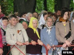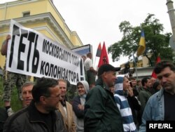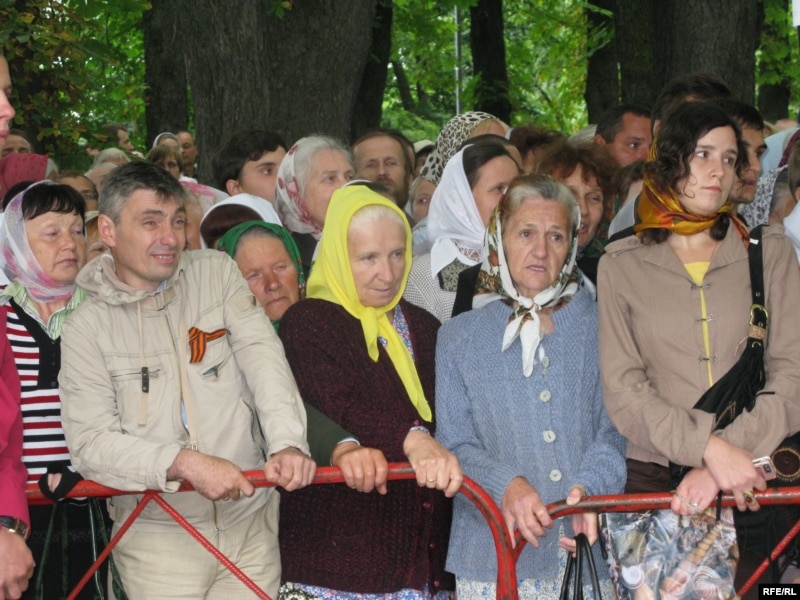 Православні чекали від Патріарха заклику до єдності. На їхніх плакатах – російськомовні написи: «Братские народы – единая церковь! В Украины – один патриарх – Кирилл».
