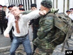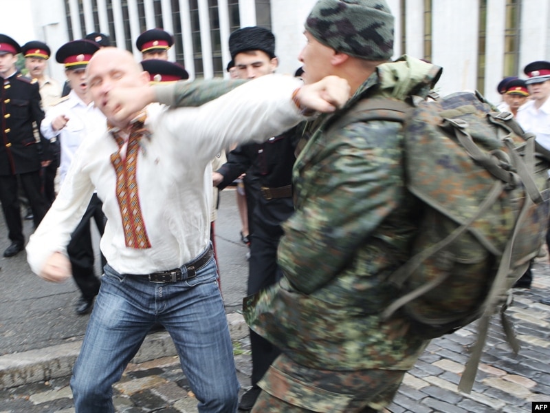 Неспокійна внутрішня ситуація в українській політиці далась взнаки і під час зустрічі у Києві Патріарха Московського та всієї Русі Кирила. З самого ранку владику, що їхав із аеропорту на Володимирську гірку, зустрічали кілька десятків молодих людей з прапорами УНА-УНСО. Вони вигукують антиросійські гасла та тримають плакати з написами: «Геть московського попа, геть колонізатора».