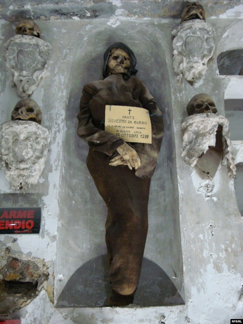 Унікальний музей смерті, де у відкритому вигляді покояться понад вісім тисяч муміфікованих людських тіл. У довгих коридорах праворуч і ліворуч знизу догори на тебе ніби дивляться, ніби кричать чи сміються людські скелети. Деякі лежать на полицях, як у шафі, решта висять уздовж стін, підвішені звичайним дротом.