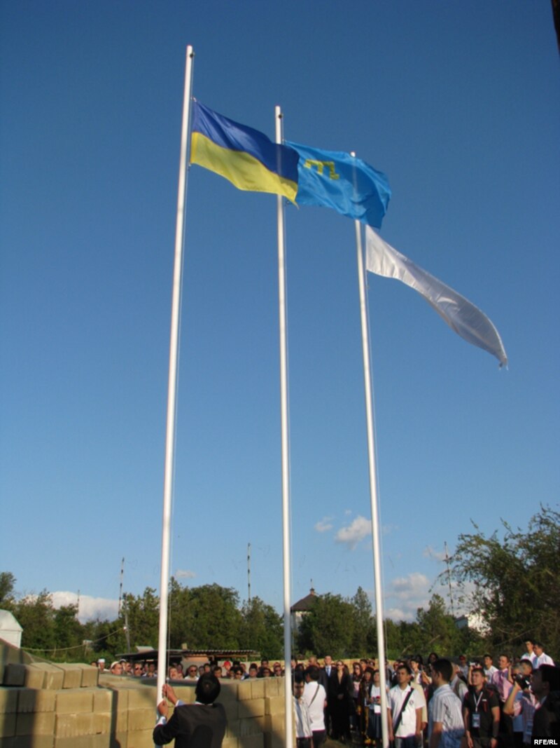 Там же під звуки українського державного і кримськотатарського національного гімнів учасники акції підняли на високих флагштоках державний прапор України, кримськотатарський національний прапор і штандарт Міжнародного об'єднання тюркської молоді.