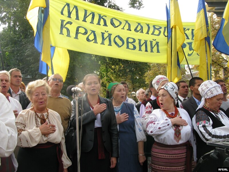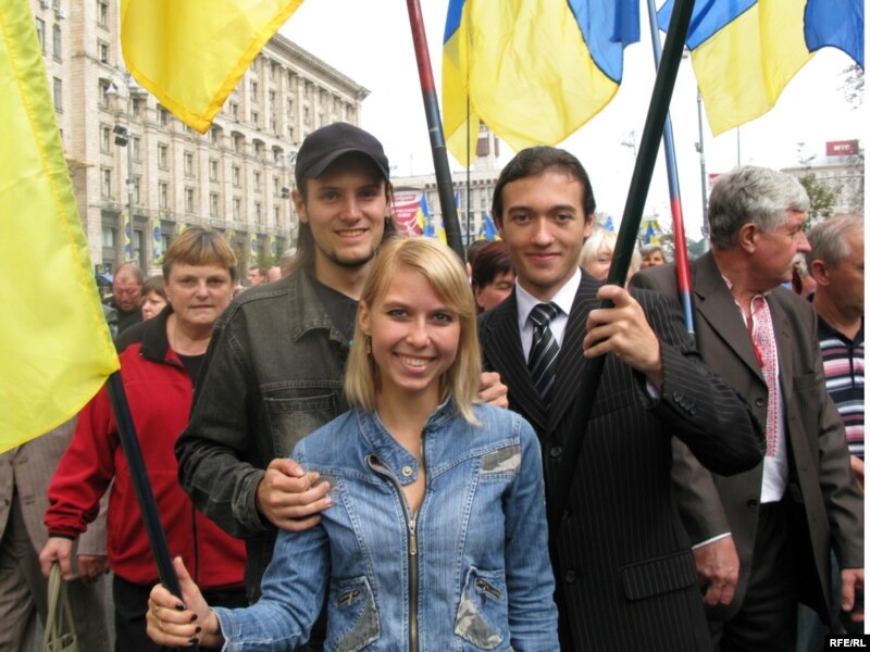 Оптимістичних фарб відзначенню 20-річчя Руху додали усміхнені молоді обличчя, ошатні вишиванки та синьо-жовте майоріння прапорів на фоні вересневого київського неба.
