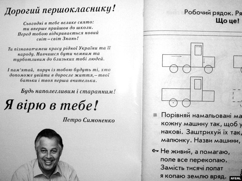 «Першим до нас потрапив щоденник з рекламою Тимошенко. Подруга подарувала моїй дочці: вона працює на АвтоЗАЗі, а там усім робітникам їх роздавали. Тоді син вертається зі школи і показує прописи, які їм роздали. Обкладинка яскрава, друк дуже гарний. Розгортаємо – а там Симоненко. Звернення до першокласників, які, по ідеї, ще й читати не вміють. А потім нам дають ще один щоденник. Розгортаємо – а там наш улюблений, в лапках, мер Євген Карташов!»