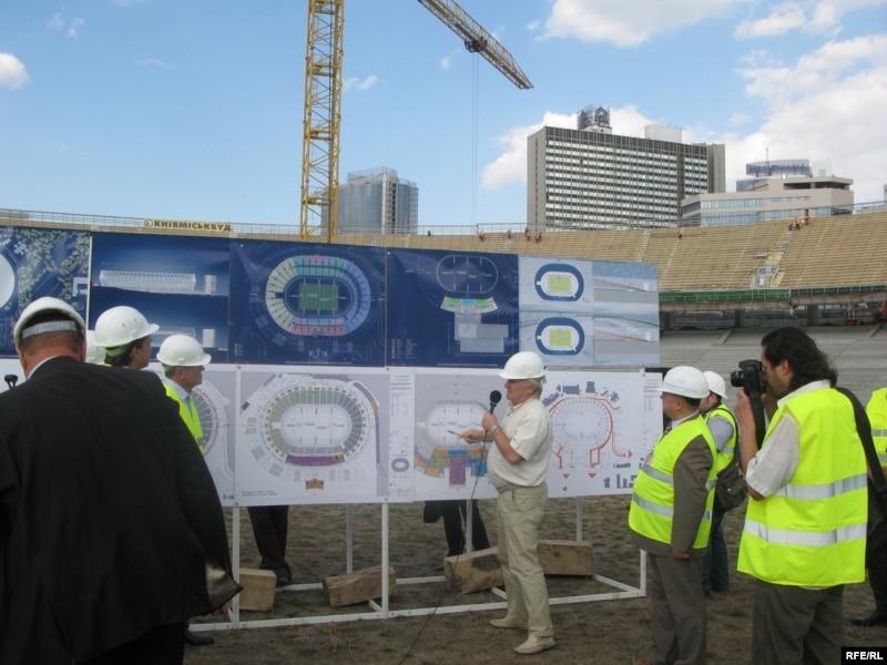 Наразі, щоб пройти на «Олімпійський», треба мати при собі не квитки, а спецперепустку і каску. Поки що на стадіоні господарюють не футболісти, а будівельники, чути над ареною не скандування фанів, а роботу кранів та екскаваторів. Навіть на День відкритих дверей перерву в реконструкції не оголошували. Серед тих, хто подивився на хід перебудови стадіону, була й кореспондентка Радіо Свобода Марічка Набока. «Екскаватори та підйомні крани працюють без упину, будівельники доводять до ладу перший ярус трибун, який готовий на 90 %. Є й основа для сидінь. Щоправда, їх ще не встановили.