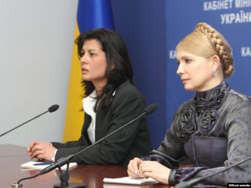 Голова місії МВФ Джейла Пазарбазіолу і прем’єр-міністр Юлія Тимошенко на перс-конференції у Києві, 14 квітня 2009р.