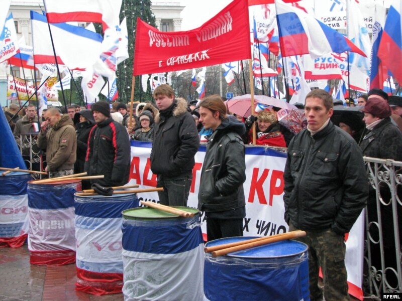«Права російської більшості в Криму порушуються. Телебачення, фільми в кінотеатрах, анотації до ліків, судове діловодство – все це на нерідній нам мові»,– мовилося у маніфесті руху «Російська єдність», оприлюдненому на мітингу.