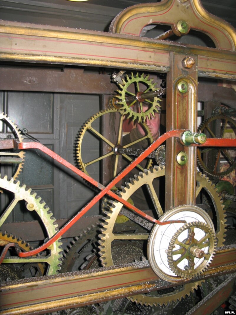 «Це годинник, якому 106 років. Запустили його у грудні перед Різдвом. Його зроблено в Москві майстром Андрієм Енодіним. Він дав гарантію 15 років – але годинник без перебоїв працює досі. Лівий блок годинника – забезпечує бій курантів що чверть години. Правий – щогодини. Набір курантів не змінювався ще довше, з 1744 року. Жодних серйозних технічних збоїв не було. Ідуть точно, знос деталей мінімальний. Годинник можна вічним вважати…», пояснює фахівець.