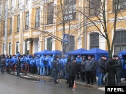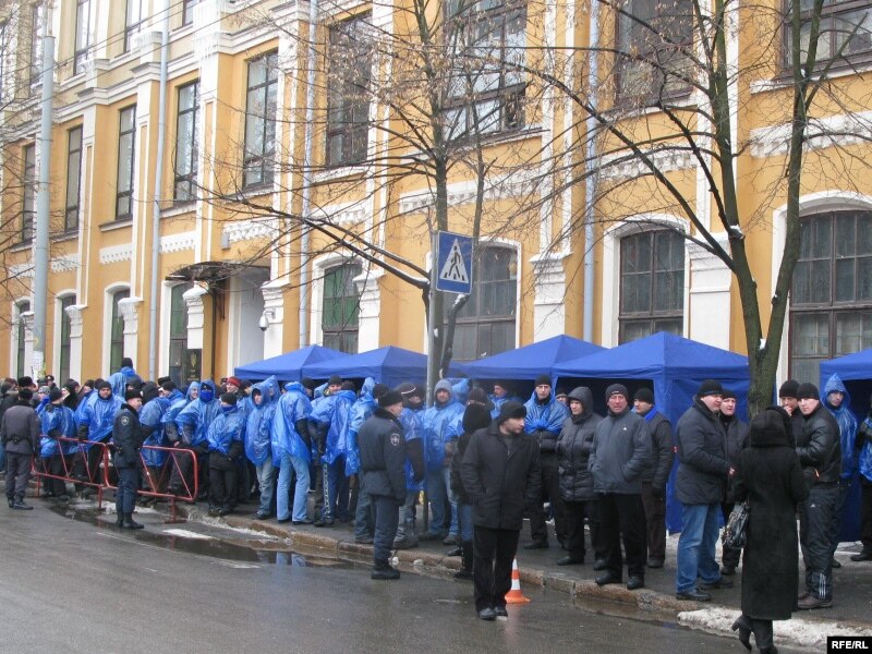 Близько тисячi прибiчникiв Вiктора Януковича та близько 200 симпатикiв Юлiї Тимошенко, за оцiнками мiлiцiї, зiбралися бiля будiвлi Вищого адмiнiстративного суду України, де почався розгляд позову лiдера БЮТ за результатами виборiв.
