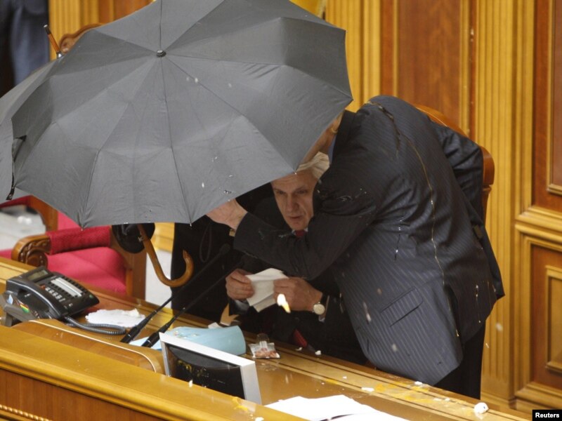 Голова Верховної Ради Володимир Литвин розпочав пленарне засідання під прикриттям парасольок, які тримали його охоронці. Спікера закидали яйцями. У сесійній залі стояла димова завіса. У Верховній Раді на пленарному засіданні зареєструвалися 211 народних депутатів.