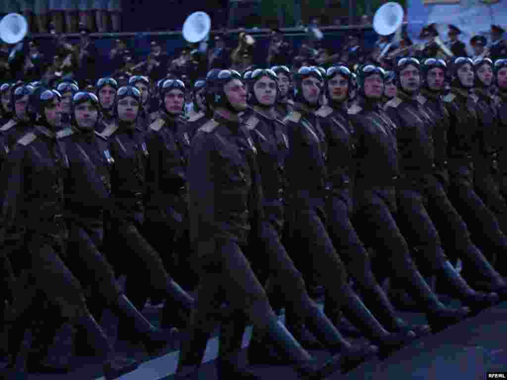 Попереду - об'єднана колона російських та українських військовослужбовців, позаду - їх білоруські колеги.