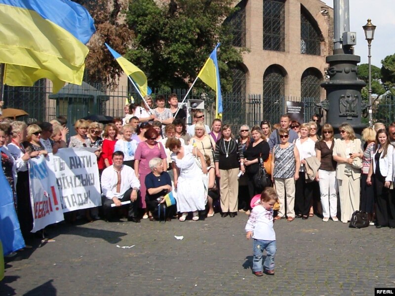 Адреса римського віче – площа Республіки біля залізничного вокзалу. Людне місце як для римлян, так і для туристів, котрі з екскурсійних автобусів пильно приглядалися до натовпу в оточенні жовто-блакитних стягів. Гасло італійською мовою про Голодомор-геноцид українців промовисто говорило іноземцям, хто і чому зібрався у неділю біля церкви Святої Марії ангелів і мучеників.