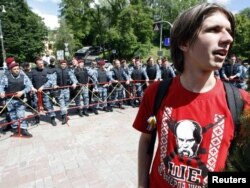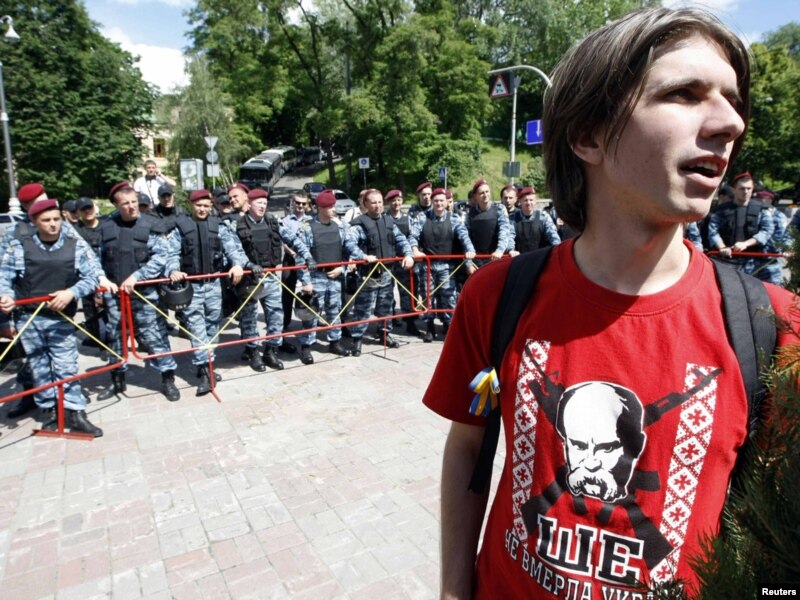 Колону з близько 50 протестувальників молодіжного руху «Спротив» заблокував «Беркут» та «Титан» біля стадіону «Динамо» по дорозі до Українського дому