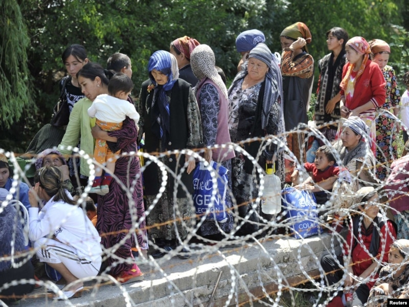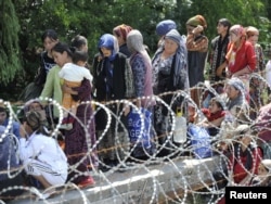 Узбецьких біженці чекають своєї черги, щоб перетнути кордон з Узбекистаном поблизу села Джалал-Кудук, 14 червня 2010 року