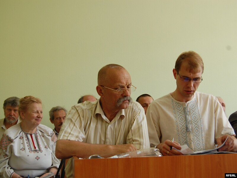 Засідання Донецького адміністративного апеляційного суду 21 червня 2010. Голова Донецької організації «Просвіта» Марія Олійник, апелянт адвокат Іван Макар, представник Степана Бандери Роман Орєхов