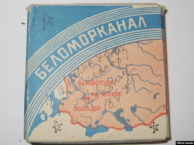 Експонат Віртуального музею ГУЛАГу і терору. Автограф Лихачова на пачці цигарок ("И с ними дедка Беломор! Д. Лихачев. 8 V 95")