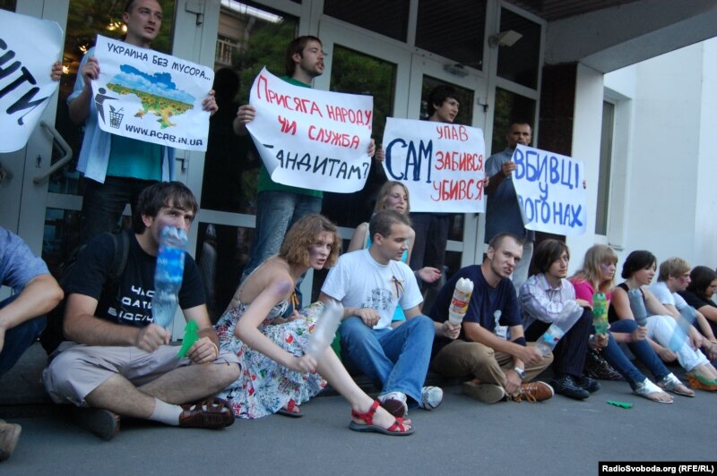 «Ми всі домовилися, що акції «Ні – поліцейській державі» ми проводимо без будь-якої символіки, – зазначає активістка руху Катерина. – Але організацій там дуже багато, при чому – і правих, і лівих, що дуже показово, тому що, власне, ця проблема турбує всіх».