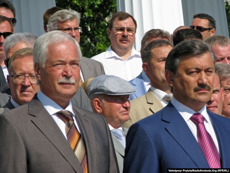 Мер Москви Юрій Лужков тримається позаду, на другому плані; попереду спікер Державної думи Росії Борис Гризлов і голова Ради міністрів Криму Василь Джарти