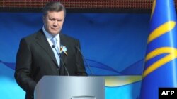 Свою патріотичну промову про майбутнє України Віктор Янукович виголосив на фоні промовистого напису на величезному екрані.
