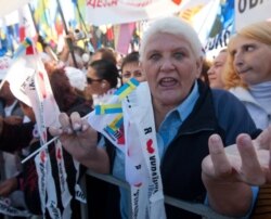 Але прихильники опозиції давати кількарічний шанс владі не хочуть. Олена з Київщини говорить, що опинилася в скруті і не може більше терпіти. «Дивіться, відбувається підвищення жіночого пенсійного віку, підняття комунальних послуг, цін на газ, – говорить вона. – А зарплата ж не піднімається! Ріст інфляції маємо, он метро у Києві по дві гривні, маршрутка, кажуть, чотири гривні буде. А зарплата у мене тисяча гривень. Я можу виїздити кожного дня на роботу за 12 гривень?! Як жити?!»