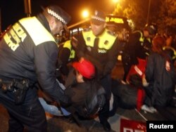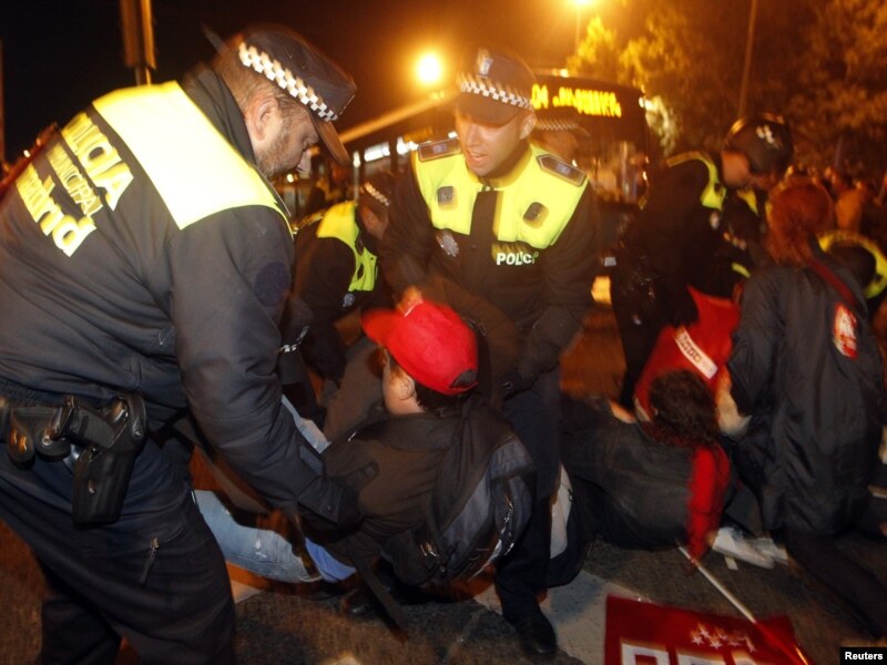 В Іспанії відбулися сутички між демонстрантами і поліцією, за даними іспанського національного радіо, постраждало 11 осіб. А в Ірландії поліція заарештувала чоловіка, який протаранив вантажівкою ворота парламенту. Поруч була акція проти допомоги банкам із бюджетних фондів.