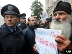 Тим часом до акції протесту патріотично налаштованих українців долучилися і представники національних меншин. Коаліційний проект закону надає переваги лише одній мові, заявив Радіо Свобода представник польської громадської організації Києва «Згода» Володимир Іванченко.