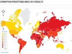 За Індексом сприйняття корупції, який проводять на основі досліджень думок експертів та бізнесменів, на одному рівні з Україною є Азербайджан, Нігерія і Зімбабве. Корупцію у Росії, яка цього року посіла 154-е місце, вважають ще поширенішою, ніж в Україні. Серед колишніх радянських республік найкраще становище в Естонії (26-е місце). Краще, ніж в Україні, виглядають справи і в сусідній Білорусі (127-е місце).