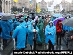 Наразі біля пам’ятника на майдані Незалежності перебуває близько 500 пікетувальників, переважна більшість з них вдягнена у поліетиленові плащі, інші прикриваються від дощу парасольками.