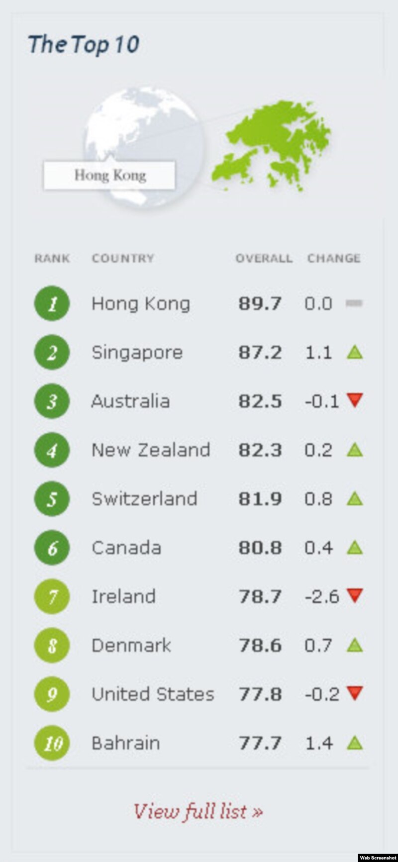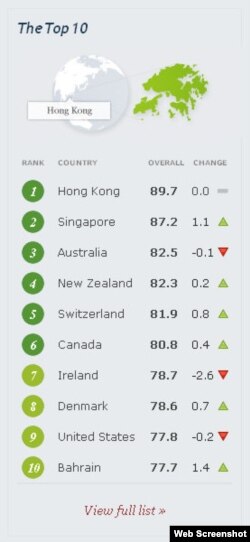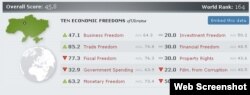 За даними фахівців Heritage Foundation та газети Wall Street Journal, які складають свій рейтинг уже впродовж 10 років, Україна опинилася серед держав із найгіршими умовами для розвитку економіки. Таким чином, Україна йде врозріз зі світовою тенденцією до більшої фіскальної відповідальності, відкритості та реформ, яка домінує у світі, незважаючи на значні труднощі, які спіткали цього року світову економіку.