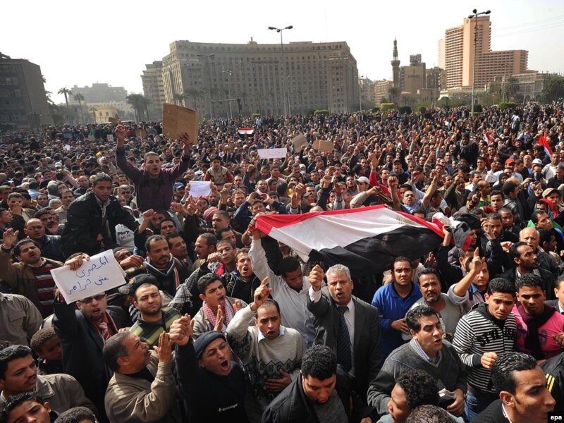 За даними телеканалу, на центральній площі Каїра зібрались близько 50 тисяч осіб, які протестують проти президента країни Хосні Мубарака. Мітинги проходять і в інших містах Єгипту.