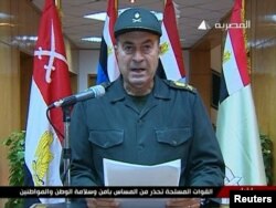 Речник війська Єгипту зачитує заяву, що військова влада скоро оприлюднить кроки для «втілення прагнень народу»