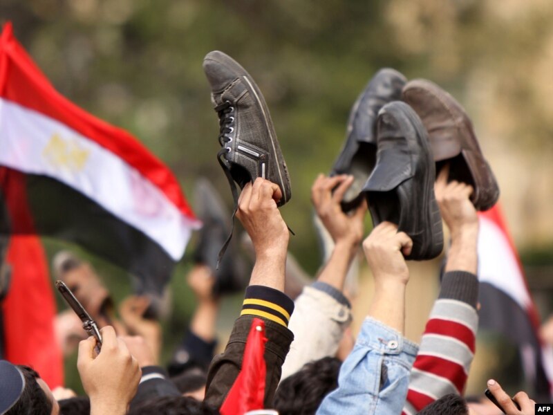 Небажання Мубарака йти в відставку демонстранти зустріли черевиками — це найвища неповага в арабському світі