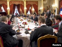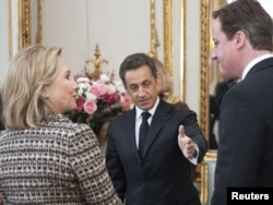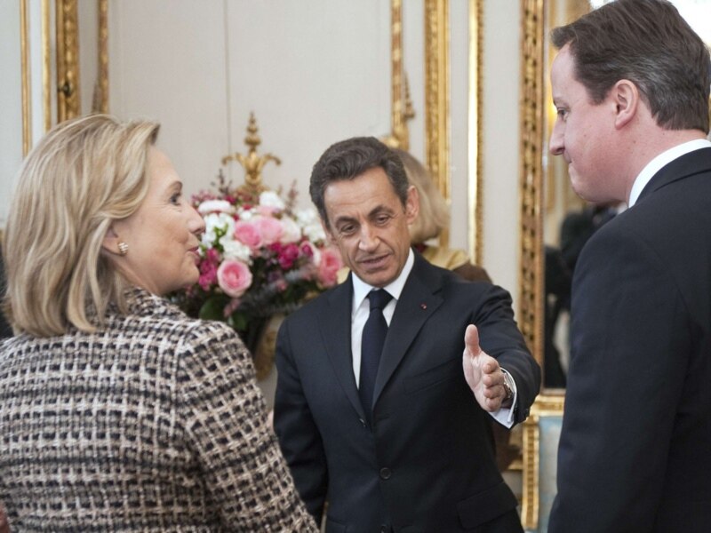 Держсекретар США Гілларі Клінтон, президент Франції Ніколя Саркозі і прем’єр Британії Дейвід Камерон у Парижі перед міжнародною зустріччю щодо Лівії