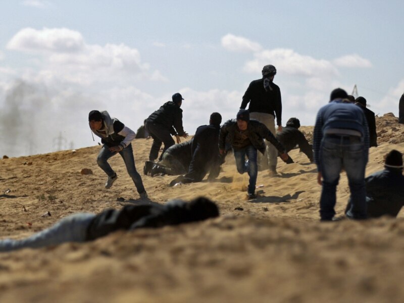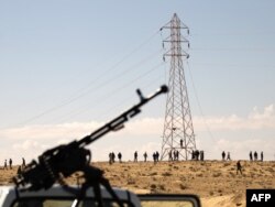 Повстанці на околиці міста Адждабії ховаються від обстрілу урядових сил. Перестрілки тривали і в вівторок