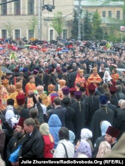 Близько десяти тисяч людей зібралися на урочисту літургію, яку відправив Московський патріарх Кирило у Харкові. Це вдесятеро менше, аніж очікували.