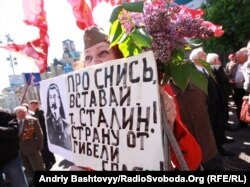У Києві 9 травня радянський прапор, червону зірку, символи із зображенням вождів Радянського Союзу використали тільки під час урочистостей та як елемент білбордів на вулицях. На будинках парламенту, Адміністрації Президента і на жодній центральній державній установі цього дня червоні прапори не з’явилися.