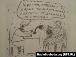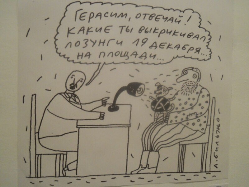 Характерним доповненням медіаперформансу є експозиція політичних карикатур на Мінську владу білоруських художників. Серед них – Андрій Більжо, Юрій Новицький, Микита Кадан, Володимир Завмировський, Марина Напрушкіна. У Білорусі публічна виставка подібних робіт є практично неможливою.