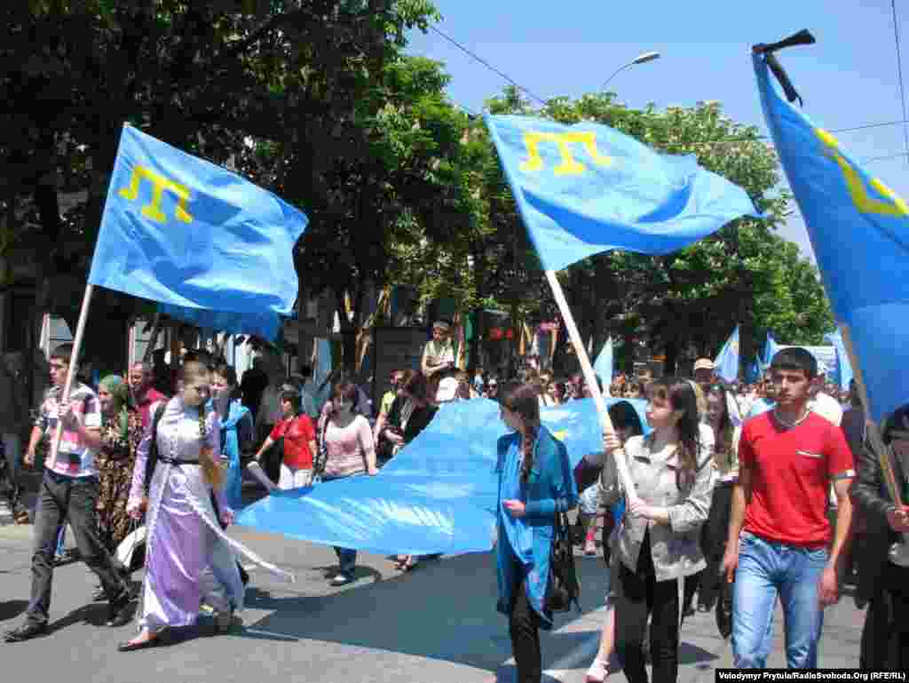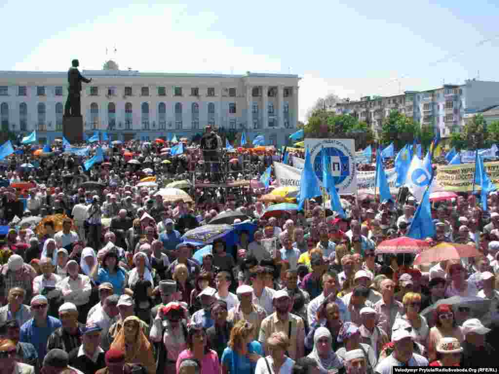 Понад 15 тисяч кримських татар провели 18 травня у центрі Сімферополя жалобний мітинг із нагоди роковин депортації кримськотатарського народу