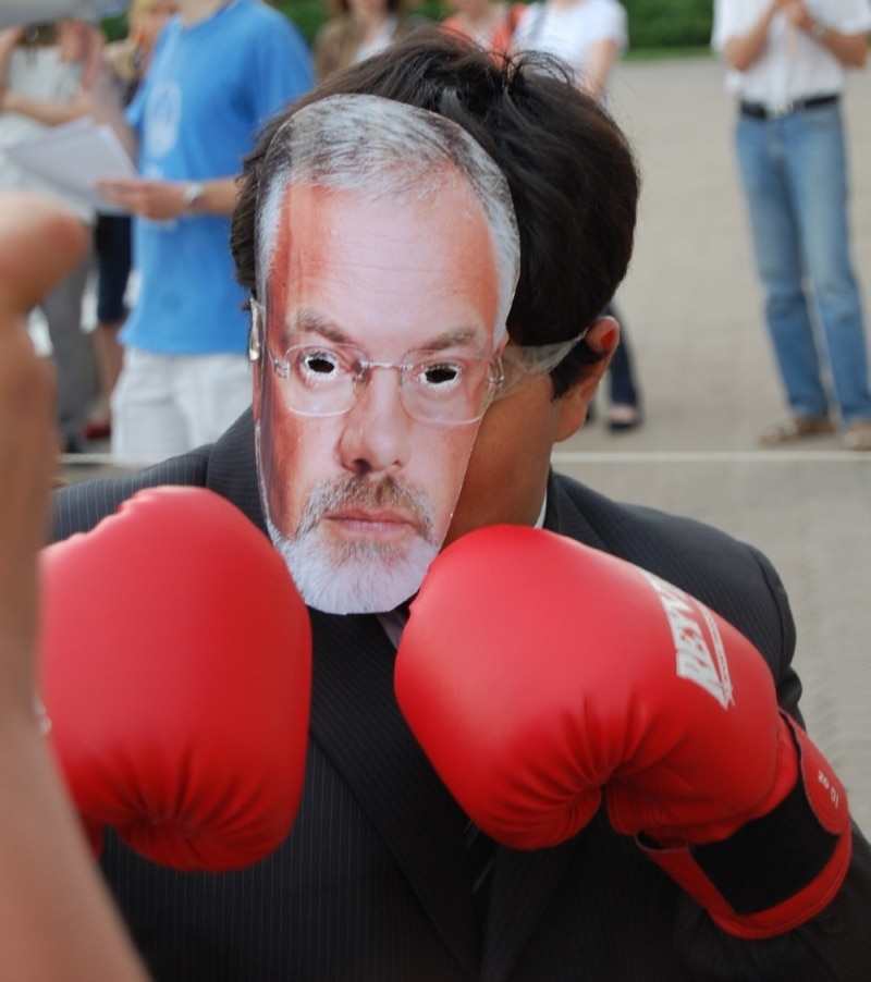 Близько півсотні студентів у Донецьку під час мітингу в рамках всеукраїнської кампанії «Проти деградації освіти» влаштували імпровізований бокс на рингу з міністром освіти та науки Дмитром Табачником.