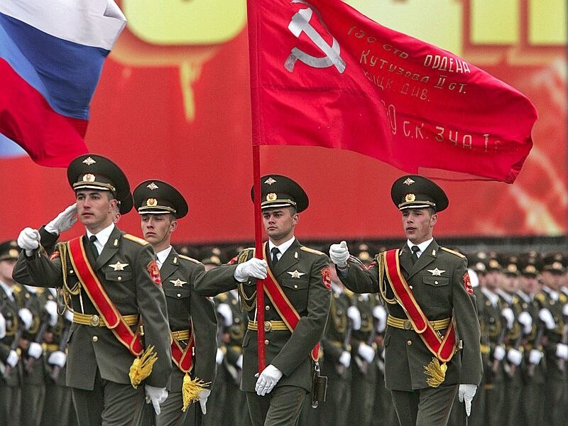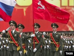 У Росії прапор Перемоги зберігають у сховищі як реліквію, дублікат виставляють у музеї й виносять на паради, копії розвішують по країні