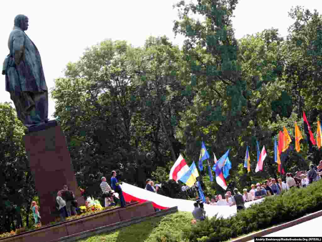 У Києві біля пам'ятника Тарасові Шевченку білоруська громада відзначила 20-річчя проголошення незалежності Білорусі.