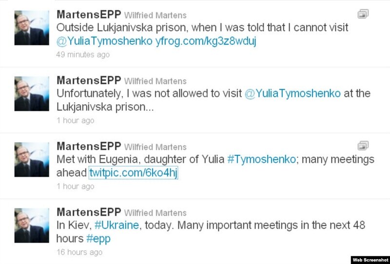 Сам Вілфрід Мартенс у своєму твітері написав: «На жаль, мені не дозволили відвідати Тимошенко в Лук’янівському СІЗО».