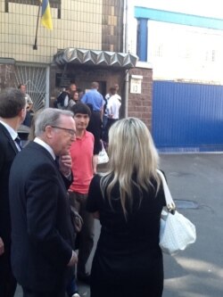 Президент Європейської народної партії Вілфрід Мартенс біля слідчого ізолятора, де перебуває Юлія Тимошенко, Київ, 14 вересня 2011 року